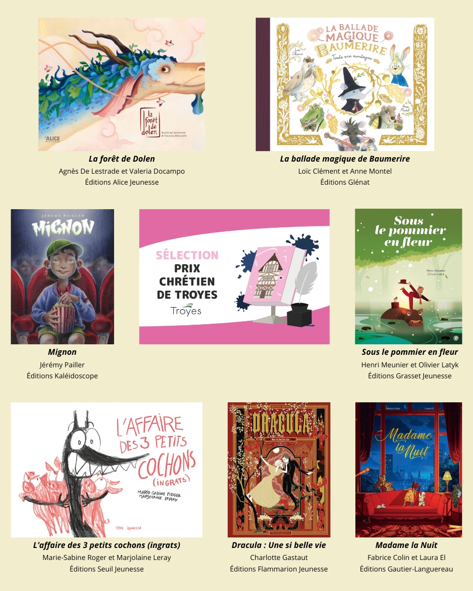 Voici la sélection 2026 du Prix Chrétien de Troyes, dôté par la Ville de Troyes lors du Salon du Livre pour la Jeunesse. Rendez-vous à l'Espace Argence le 9 octobre pour la remise du prix ! Vous pouvez retouver tous les livres et leurs résumés sur le lien Babelio.